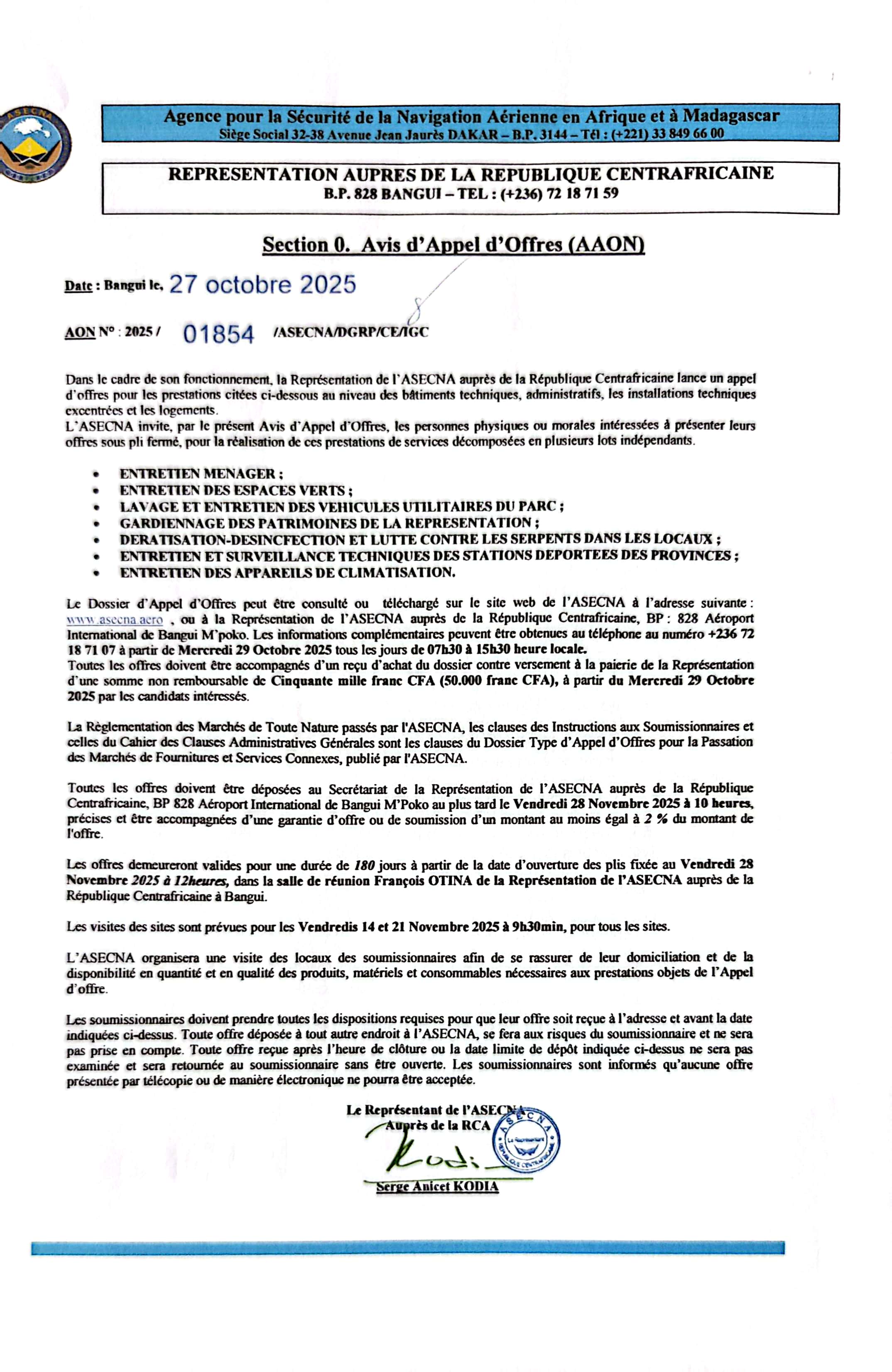 Vous trouverez ci joint un avis d'appel d'offre ouvert de l'ASECNA